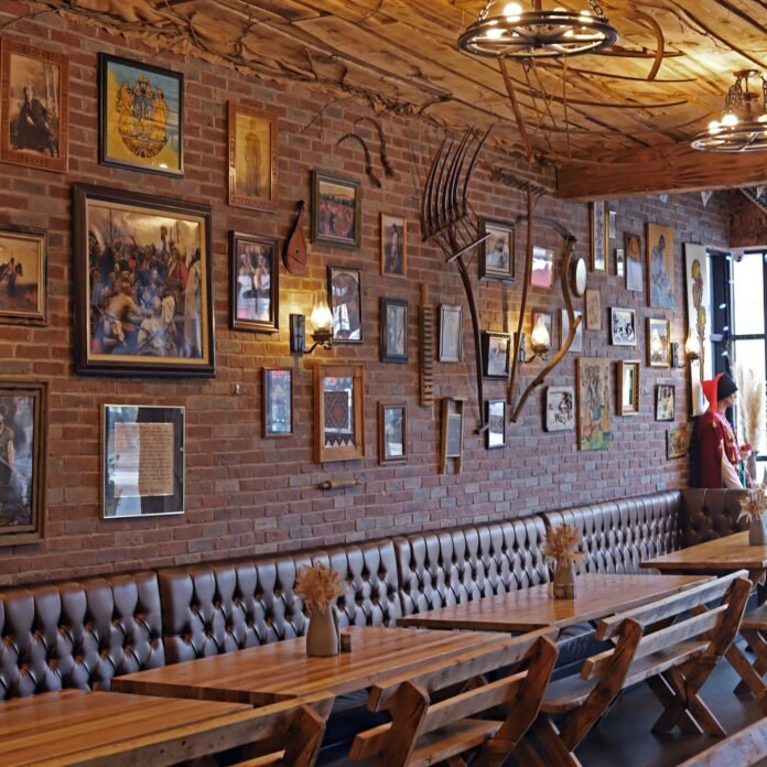 Інтер’єр ресторану виконаний в українсько-патріотичному стилі: на стінах — вишивки, старі світлини із зображенням селянського побуту, картини з українськими пейзажами, старовинна козацька зброя, фотографії провідників ОУН/УПА, патріотичні гасла. Щосуботи тут можна послухати «живу музику» у виконанні українських музикантів, а щоп’ятниці — заспівати караоке.