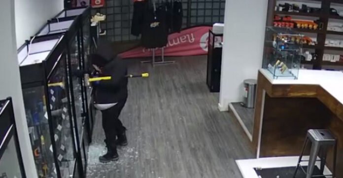 Пограбування сталося вночі, коли у магазині нікого не було. Один із злочинців розбив вікно біля дверної ручки і зсередини відчинив замок. Кількість помилок, яких парочка припустилася після цього, виглядає дивовижною.