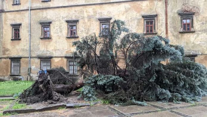 Велика кількість дерев була повалена сильним вітром. Зокрема на вулиці Крушельницької, дерево впало на автомобіль, на вулиці Чукаріна поблизу “Нової пошти” та нещодавно посаджені дерева у центрі Львова.