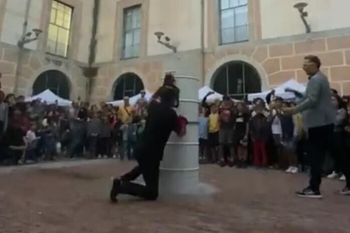 Співробітник місцевого вишу проводив експеримент перед глядачами, зібралося близько 300 осіб. Сутью випробувань було показати, що буває, якщо з’єднати в бочці рідкий азот та гарячу воду. В експерименті брали участь двоє вчених, один вливав рідину, інший тримав металеві барабани. Коли перший почав переливати воду та азот у ємності, стався вибух.