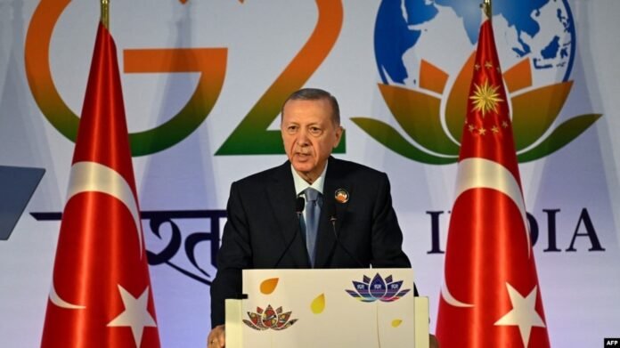 Про це турецький лідер заявив у відповідь на запитання журналістки Української служби Голосу Америки Тетяни Ворожко під час прес-конференції за результатами зустрічі G20 у Нью-Делі. Вона попросила пояснити його точку зору щодо критики можливого задоволення деяких російських вимог, адже це може стати сигналом того, що агресія дозволяє росії досягати своєї мети.