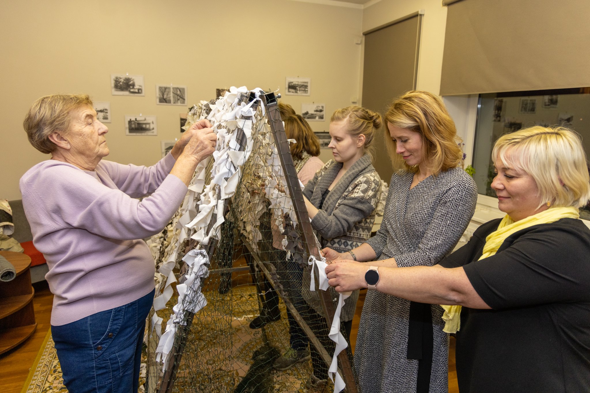 В Естонії жінки регулярно збираються, щоб зробити маскувальні сітки для захисників України.