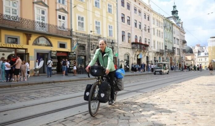 Спочатку 70-річний француз завітав до Львова та прямує до Києва.