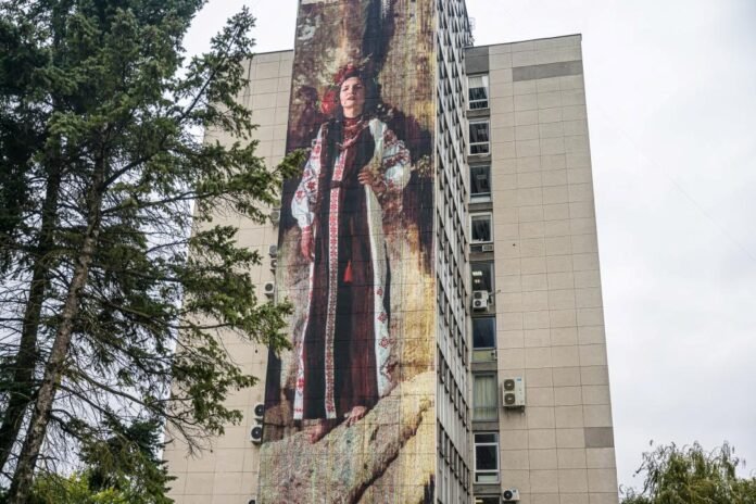 У Вільнюсі створили мурал «Незламна». У його основу лягла фотографія, зроблена на Хортиці за тиждень до підриву Каховської ГЕС.