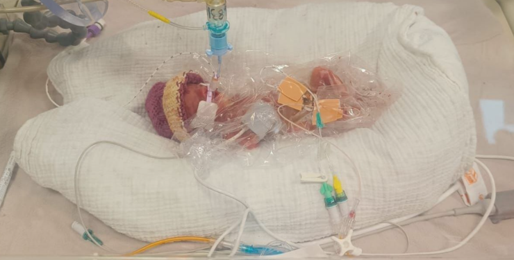 Спочатку вагітність протікала нормально, але на 20-му тижні лікарі виявили аномалію. Через це пологи могли початися будь-якої миті, тому було ухвалено рішення покласти вагітну в лікарню на збереження. Вона там пробула понад три тижні, перш ніж народилася дівчинка.