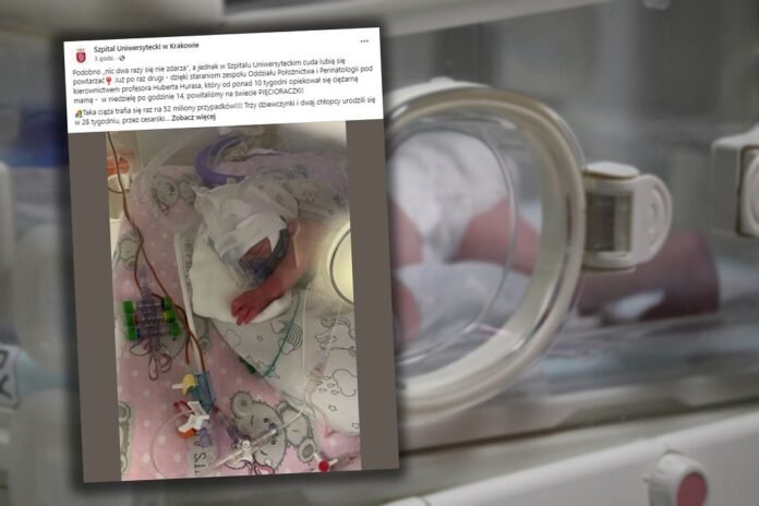 “Завдяки колективу кафедри акушерства та перинатології під керівництвом професора Губерта Хураса, який уже понад 10 тижнів вів вагітну маму, у неділю (12 лютого – ред.) після 14 години ми вітали на світ п’ятірню”, – повідомила Університетська лікарня в Кракові у Facebook.