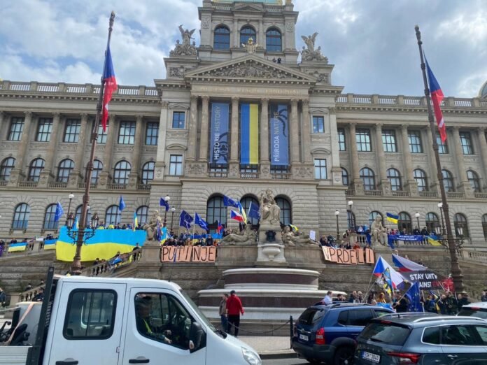Біля сходів Національного музею у Празі представники української діаспори та місцеві активісти провели мітинг на знак солідарності з Україною, розуміючи, що вона зараз боронить весь Європейський континент. Як передає Укрінформ, про це у Фейсбуці повідомило Посольство України в Чехії.