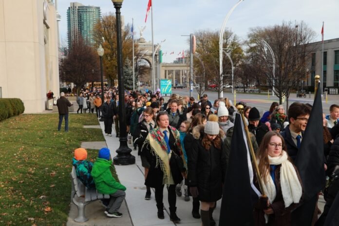 Захід, організований Конгресом українців Канади – відділ Торонто, розпочався панахидою перед меморіалом Голодомору у співслужінні з владиками Браяном (Байдою), єпархом Української греко-католицької Церкви Торонто і Східної Канади й Андрієм (Пешком) – Єпископом Східної Єпархії Української Православної церкви Канади.