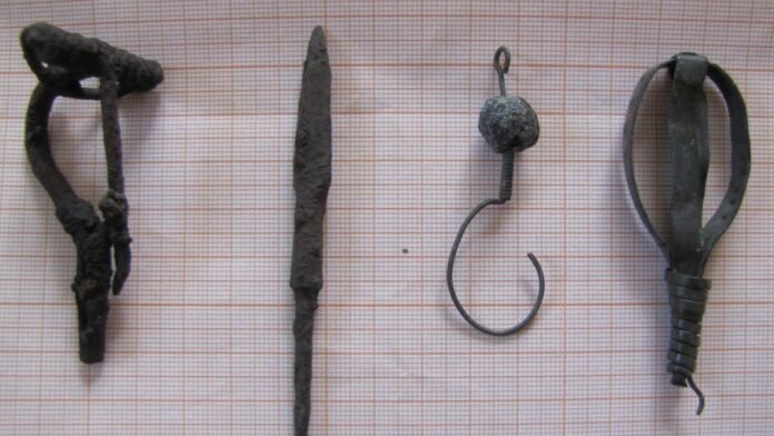Серед металевих виробів: мідна підвіска III-IV ст. н.е., скронева підвіска з намистиною княжої доби, залізні фібули, монети (римська бронзова ІІІ ст. н.е. і «боратинка» XVII ст., вістря стріли княжої доби, голка, пряжка, уламки ножів, фрагменти пізньосередньовічного вудила, цвяхи, – говорить археолог.