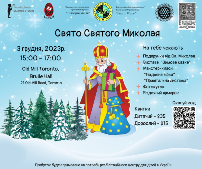 Міжнародна Організація Українських Громад “Четверта Хвиля” та Дитяча театральна Студія ім. Л. Олійника, у співпраці з Канадським відділом Літературно-Артистичного Товариства ЛАТКА, за підтримки Фундації Енциклопедії України та Суспільної Служби Українців Канади, раді запросити юних глядачів та їхніх батьків на свято до Дня Святого Миколая!