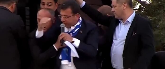 Під час мітингу в Ерзурумі мер Стамбула Імамоглу, який стане віцепрезидентом, якщо головний опозиційний кандидат Кемаль Киличдароглу переможе на виборах, звертався до своїх прихильників з даху автобуса просто неба. У той самий час деякі люди з натовпу почали закидати його і його прихильників камінням.