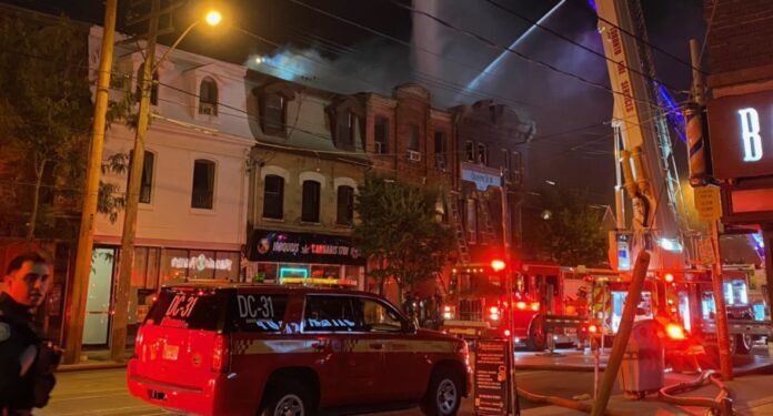 Пожежа виникла в одній із будівель на Queen Street West, трохи на захід від Bathurst Street, близько 1:30 ночі.